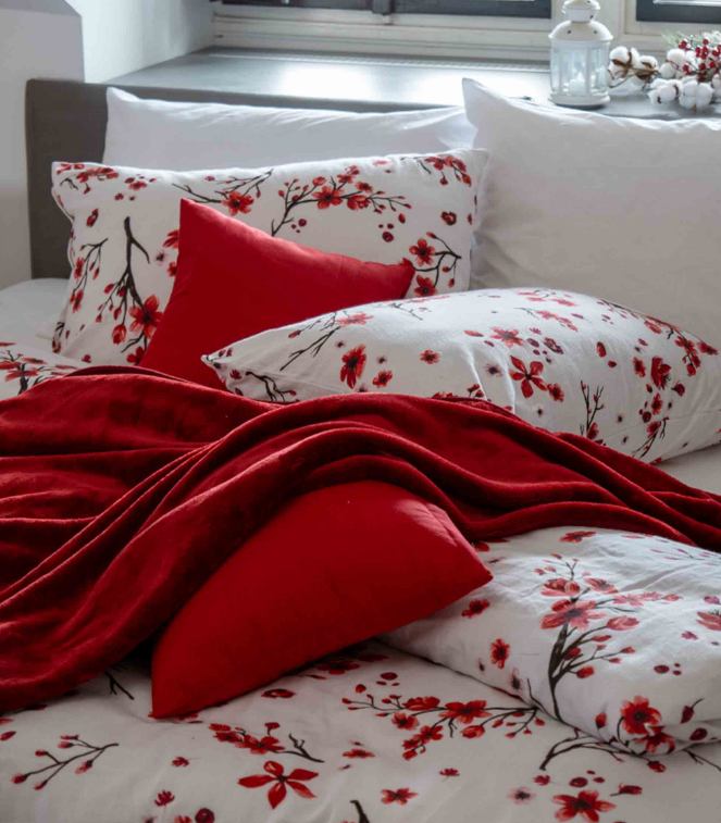 Crvena boja posteljine s razigranim uzorkom unosi energiju i svježinu u spavaću sobu, a istovremeno se lako kombinira s drugim tekstilom i dekoracijama. Set uključuje plahtu s gumicom, ravnu plahtu i dvije jastučnice, što ga čini praktičnim i funkcionalnim za svakodnevnu upotrebu.