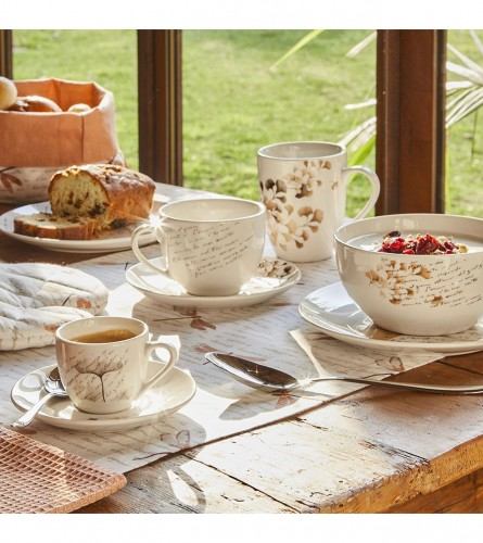Ovaj elegantni set za kavu ili čaj marke Tognana savršen je dodatak svakom stolu. Set se sastoji od šest šalica i šest tanjurića, pružajući savršen spoj funkcionalnosti i estetike. Porculanske šalice i tanjurići izrađeni su od visokokvalitetnog materijala koji garantira dugotrajnost i otpornost na svakodnevnu upotrebu.