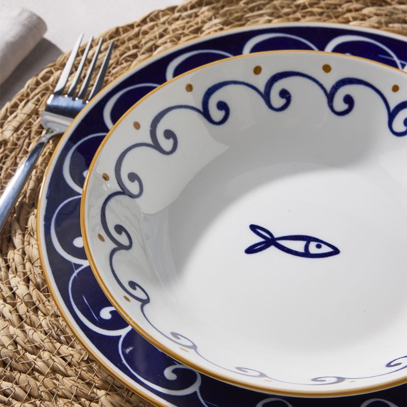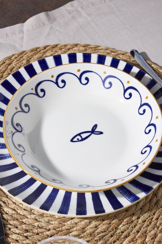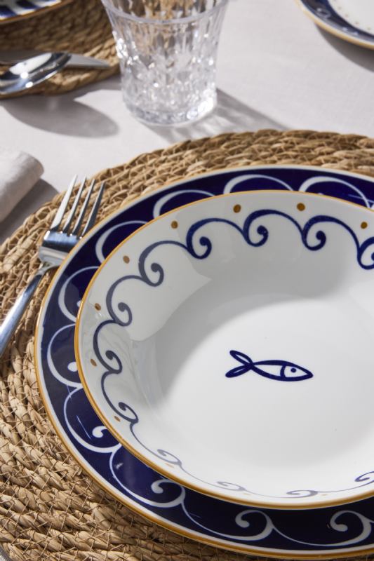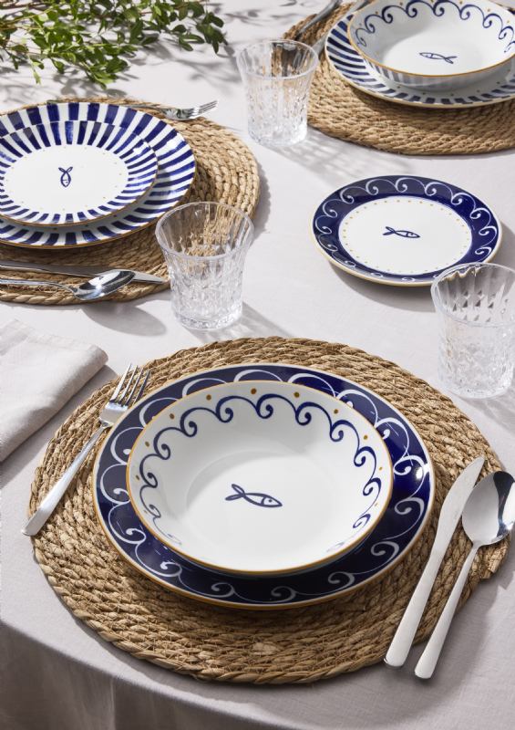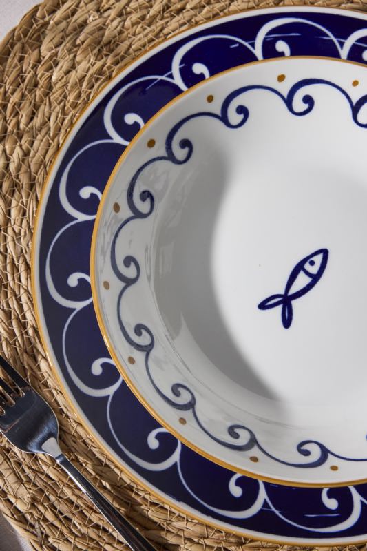 Servis za stol od 18 dijelova iz kolekcije MADISON SARDINIA donosi prepoznatljiv mornarski motiv u kombinaciji tamno plave i bijele boje. Dekor SARDINIA inspiriran je mediteranskim stilom i morskim elementima, stvarajući svjež, elegantan i vizualno privlačan izgled svakog stola. Idealan je za svakodnevnu upotrebu, ali i za posebne prigode u kojima želite unijeti dašak Mediterana.