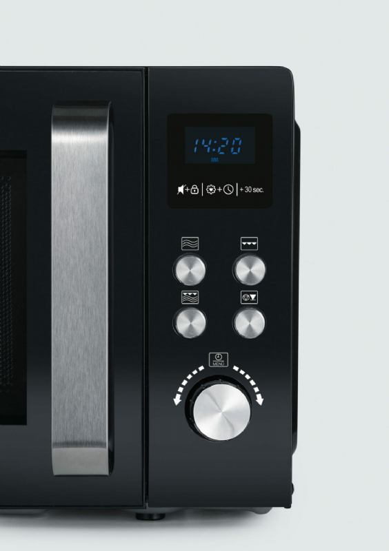 Mikrovalna pećnica s funkcijom roštilja visokokvalitetnog dizajna. Uređaj ima izlaznu snagu približno 800 W, dok je snaga roštilja cca. 1000 W. Moderni LED zaslon osjetljiv na dodir s funkcijom Quick Select osigurava jednostavno rukovanje. Zvučni signal kuhinjskog uređaja također se po želji može deaktivirati. Ova mikrovalna ima 10 razina snage, uključujući postavku odmrzavanja, kao i 8 različitih automatskih programa kuhanja za pripremu hrane. Promjer prijenosnog tanjura je 24,5 cm, a dimenzije mikrovalne su 45,2 x 40 x 26,2 cm. Ukupan kapacitet mikrovalne pećnice je cca. 20 litara.