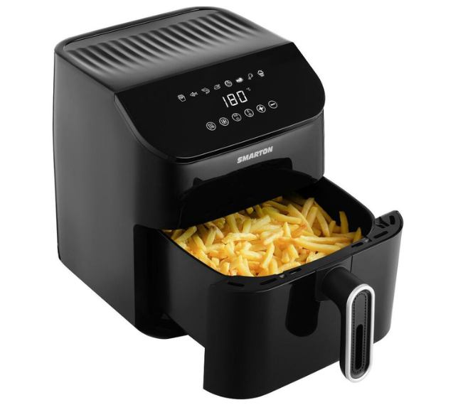 Smarton aerogrill FR 450 je moderan uređaj s elektronskim senzorskim upravljanjem i ekranom. Radi na temperaturi od 80 °C do 200 °C, a kontrola temperature omogućava precizno prženje. Ima osam različitih parametara, uključujući automatsko isključivanje, protuklizne noge, signal završetka i zaštitu od pregrijavanja. Kapacitet uređaja je 4,5 litara, a snaga 1350 W. Idealno za pripremu raznih jela s minimalnom količinom ulja.