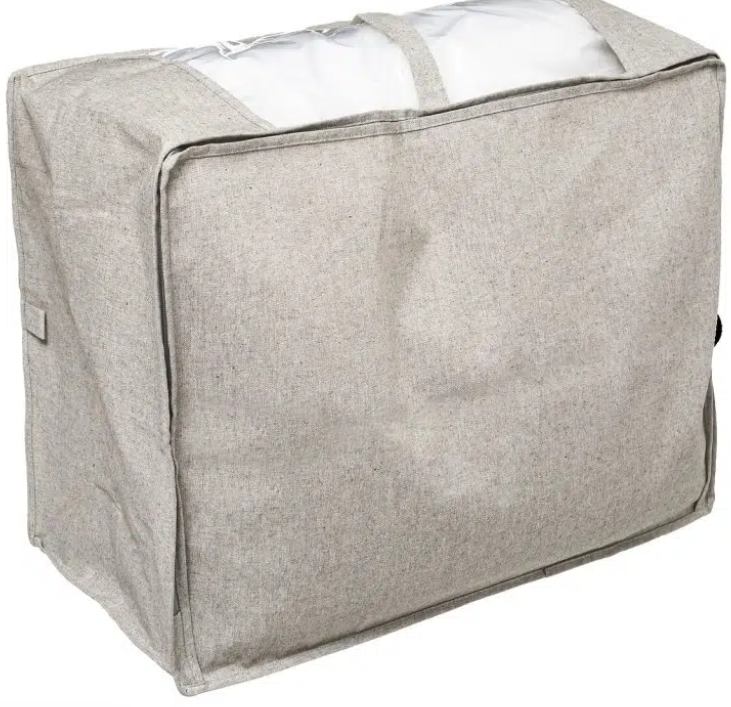 Spremnik za odlaganje dimenzija 60 × 45 × 30 cm izrađen je od kombinacije poliestera i pamuka, pružajući izdržljivost, fleksibilnost i elegantan izgled. Bež boja omogućuje lako uklapanje u različite interijere, dok lagana konstrukcija olakšava rukovanje i premještanje.
