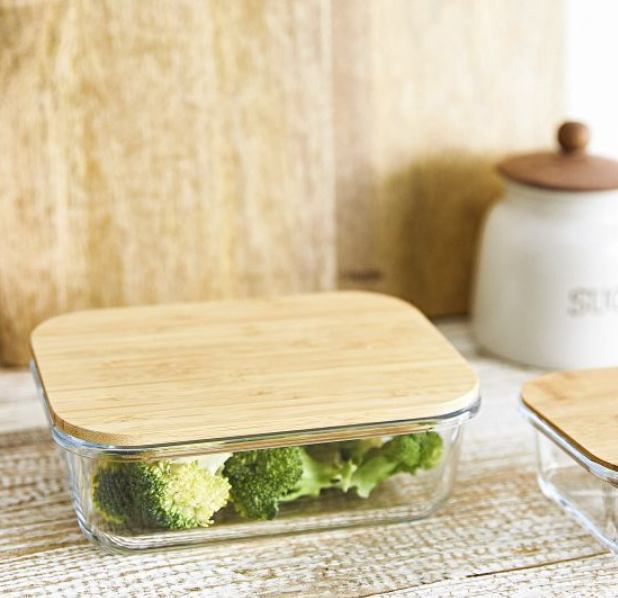 Staklena posuda za čuvanje hrane, s prirodnim bambusovim poklopcem, idealni dodatak za svaku kuhinju. Zahvaljujući transparentnom dizajnu, sadržaj je uvijek vidljiv bez potrebe za otvaranjem, dok poklopac s brtvom osigurava svježinu i higijensko skladištenje.