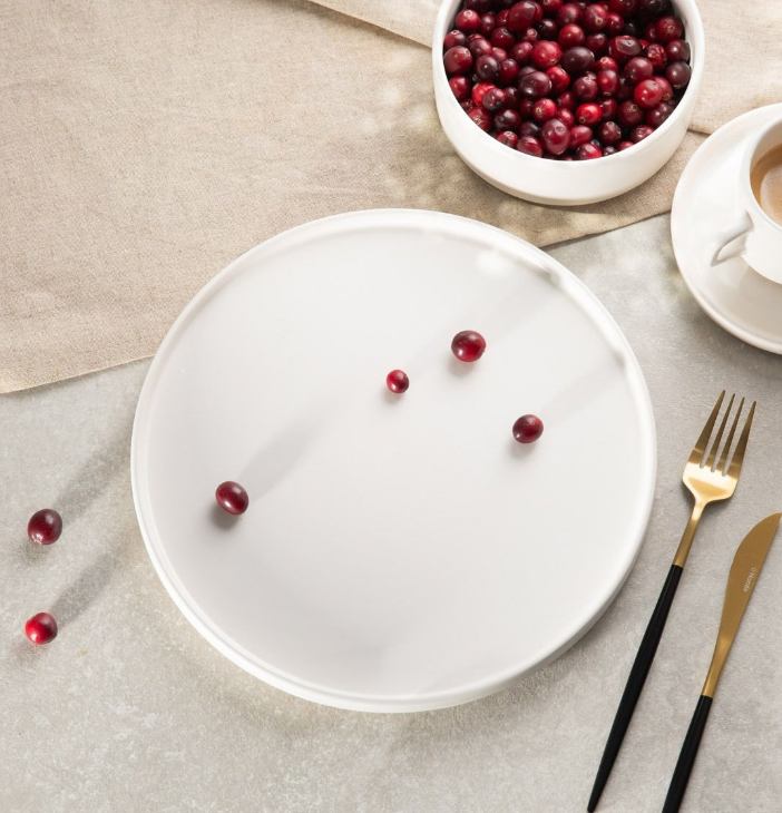 Bijeli tanjur FAMELIO izrađen od dolomita odlikuje se jednostavnim, modernim dizajnom i izuzetnom izdržljivošću. S promjerom od 27 cm i ravnom površinom s rubom visine 2 cm, idealan je za svakodnevno posluživanje glavnih jela, kolača, peciva ili raznih zalogaja. Zahvaljujući minimalističkom izgledu, lako se uklapa u svaku kuhinjsku kolekciju.