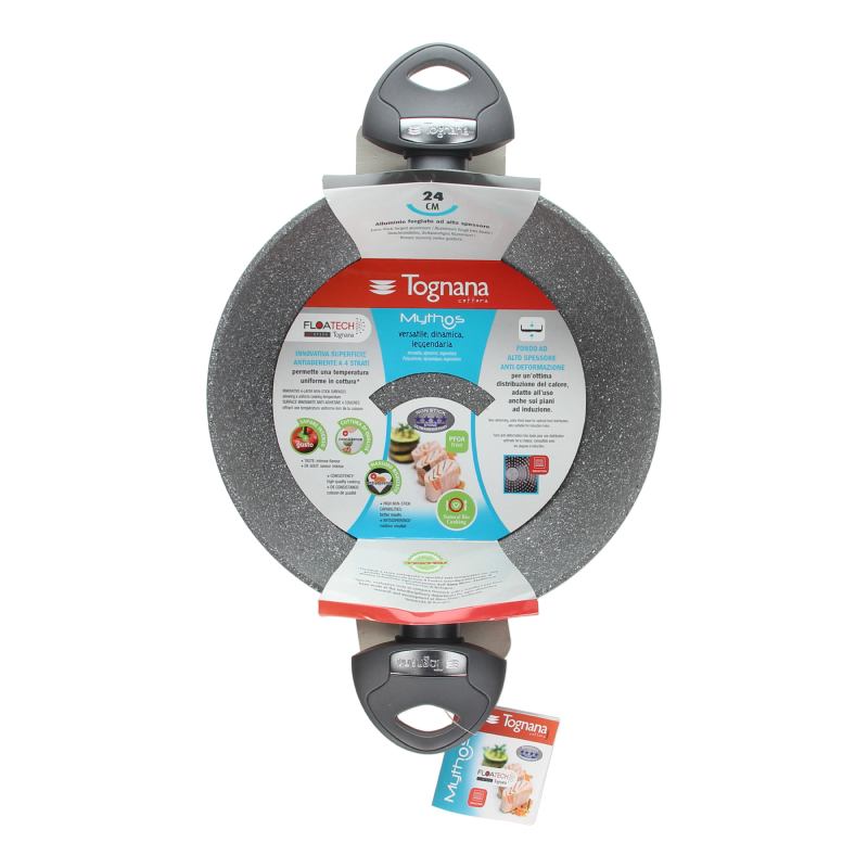 Tava izrađena od kovanog aluminija s dnom velike debljine pogodnim za indukciju. Ojačana 4-slojnim unutarnjim premazom i opremljena ručkom s mekom završnom obradom, inovativnom FLOATECH neljepljivom površinom hrapavom na dodir. Tava ima izvrsnu ravnomjernu raspodjelu topline, visoku otpornost na ogrebotine.