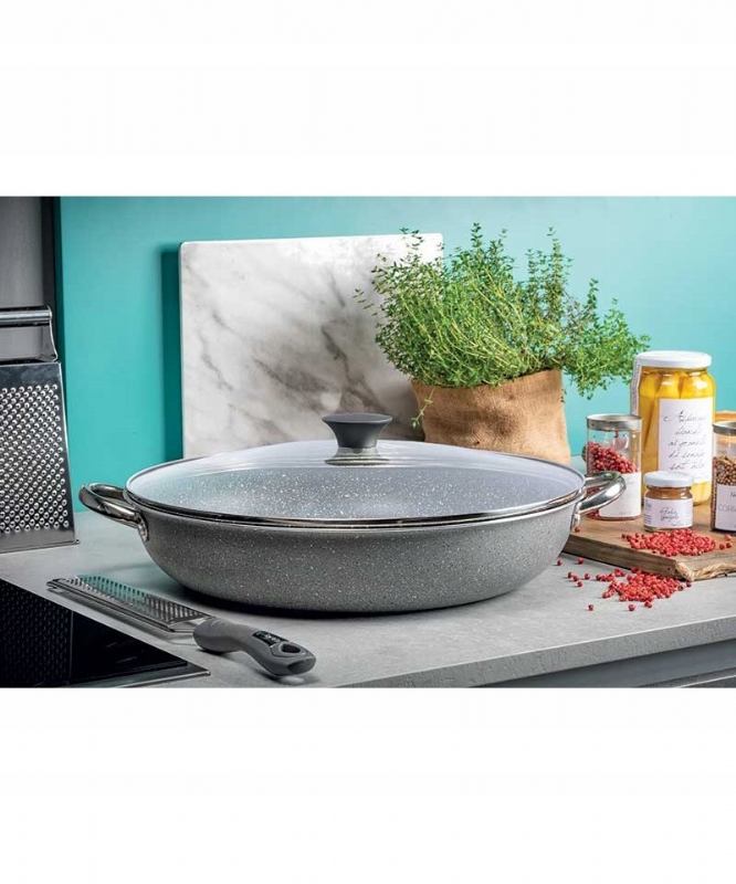 Linija Ambiziosa, tijelo od lijevanog aluminija s dnom velike debljine i čelikom koji zrači toplinu. 4-slojna neljepljiva unutrašnjost s efektom granita i uklon...