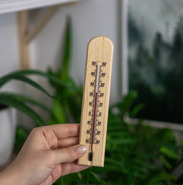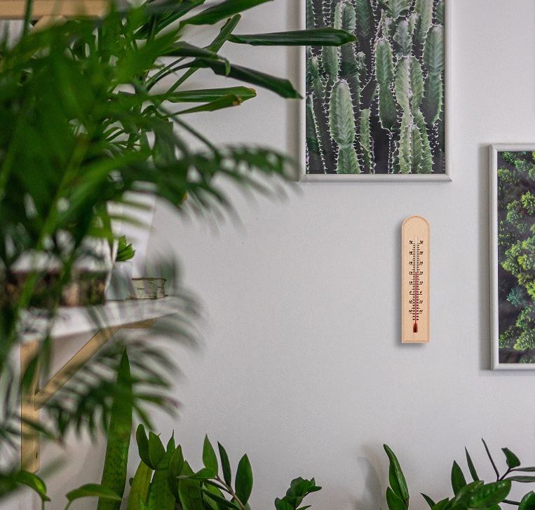 Minimalistički dizajn – drveni termometar sa suptilnim uzorkom i ukrasnim lukom uklapa se u svaki interijer.
