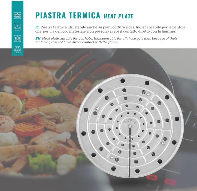 Ova termo ploča koristi sustav difuzije topline koji pomaže u ravnomjernom kuhanju hrane, sprječavajući da jela budu prekuhana ili nedovoljno kuhana. Dodatno, može se koristiti na plinskim pločama za održavanje topline hrane do 10 minuta, što je idealno za praktično serviranje.