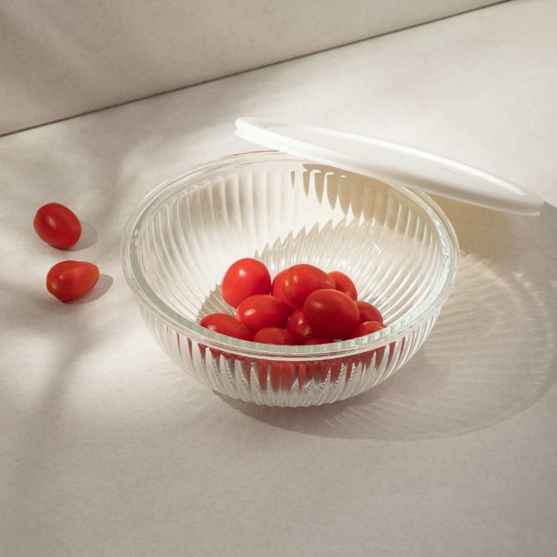 Staklena zdjela s keramičkim poklopcem kapaciteta 2 litre idealna je za pohranu i posluživanje hrane. Izrađena od kvalitetnog stakla, omogućuje preglednost sadržaja, dok keramički poklopac osigurava zaštitu i estetski izgled. Praktična za svakodnevnu upotrebu u kuhinji – od salata do tijesta.